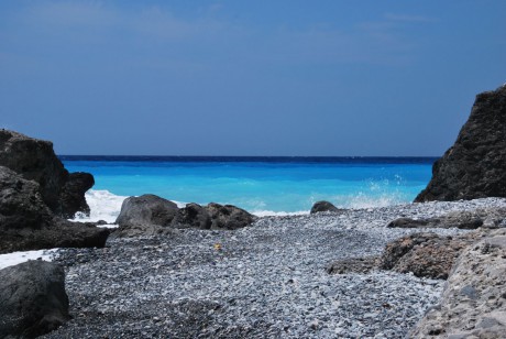 Když jsem prošel nad pláží Agios Pavlos, tak jsem po chvíli přišel k dalším dunám u ústí rokle Eligias a po nich sejde cesta až na břeh moře. Pořád je dost vlnovaté, ale nedalo mi to a vlezl jsem tam i přes ty vlny a jeho ne zrovna komfortní teplotu