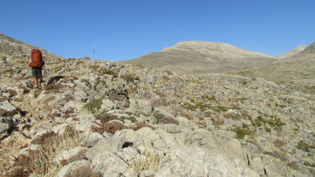 Blížíme se k cíli, k planině Katsiveli. Hora Sourichti (2356 m), která se nad ní pne z jedné strany, je větší a větší