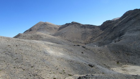 Teď se potřebujeme dostat dolů a pak zase nahoru do sedla v hřebeni naproti. Pod ním by měla být cesta do jiného sedla, Rousiés, kde hodláme přespat (a kde je taky voda)