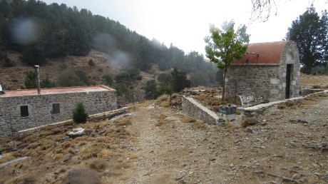 Ke konci silnice v bývalé vesnici Kali Lakkoi je nový kamenný domek a vedle nezbytná kaplička. A tady jsme ze silnice odbočili, i když tam bohužel žádná dobře patrná pěšina nebyla; jen síť kozích stezek