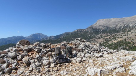 Krásné výhledy na hory - vlevo vzadu temný hřeben s horami Volakias a Gigilos nad roklí Samária, a vpravo světlý hřeben, který vlevo končí horou Zaranokefála