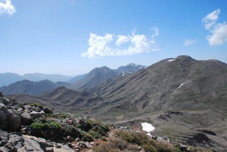 Člověk neví, kam se dřív koukat, co fotit...nádhera!! Doleva pod svahy hory v popředí u pravého okraje snímku (Papa Balomata, 2121 m) je údolí, kterým jsme se dostali na planinu Katsiveli, pod Modaki